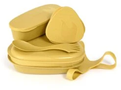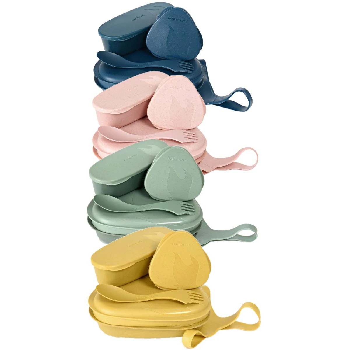 Das LunchKit BIO ist eine praktische Essgeschirrkombination für kleine Snacks unterwegs und wurde vom skandinavischen Designer Joachim Nordwall speziell für Light My Fire entworfen. Das Set besteht aus 1 Deckel, der als Teller (500 ml) dient, 1 Schüssel mit tiefem Boden, die auch als Teller (900 ml) fungiert, 1 SnapBox Original (170 ml) Behälter, 1 SnapBox Oval (320 ml) Behälter und 1 Light My Fire Spork Original. Ein Gummihalter sorgt für Ordnung beim Transport. Die Deckel der SnapBox-Behälter verschließen dicht und vermeiden ein Auslaufen. Besonders praktisch an diesem kleinen Set ist die Light My Fire Spork Original, eine Kombination aus Messer, Gabel und Löffel. Alle Teile können kompakt verstaut werden und dienen als Messbecher. Alle Komponenten sind spülmaschinen- und mikrowellengeeignet und bestehen aus biobasierten Kunststoffen, die zu 100% BPA-frei sind. Außerdem ist LunchKit eine vielseitige Lunchbox für Schule oder Arbeit.