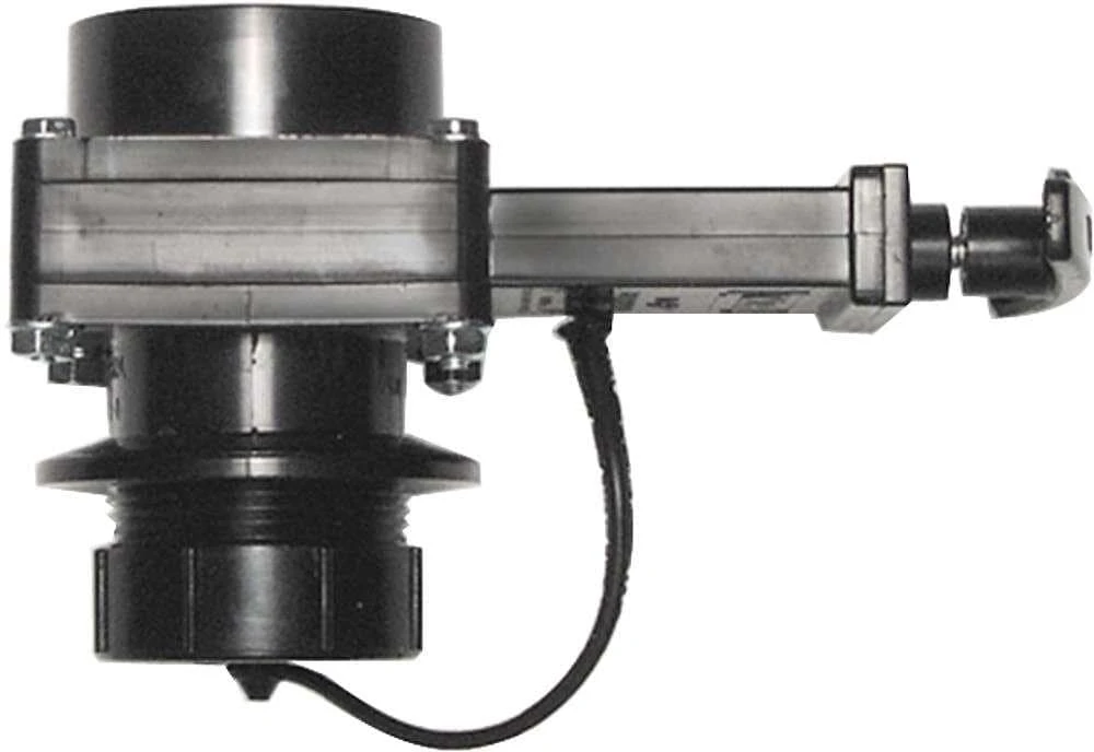 Lilie Abwasserschieber zur schnellen Entleerung von Tanks. Unten mit Gewindeauslass 1½” (38 mm) mit Schraubdeckel, auf der anderen Seite ein Einlass zum Einkleben.