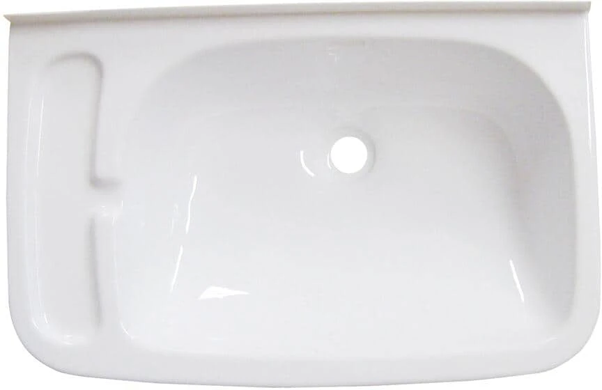 Mit Seifenablage und Abflusskanal ins Waschbecken. Sehr stabil, aus hochglänzendem Polystyren.
