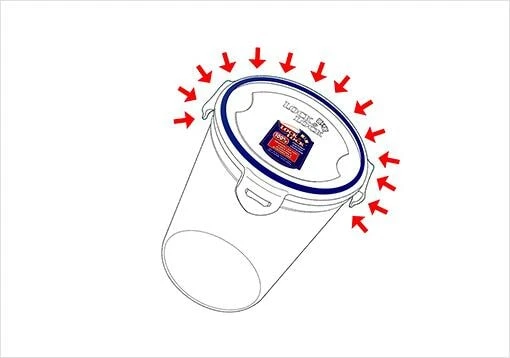 Dieser Multifunktionsbehälter dichtet dank seiner patentierten Abriegelungstechnologie sicher ab und hält den Inhalt besonders frisch. Dank der halbtransparenten Farbgebung, lässt sich der Inhalt des Behälters ganz einfach und unkompliziert überprüfen. Der Behälter kann mehr als 3 Millionen Mal geöffnet und geschlossen werden und ist auch auf Reisen das ideale Aufbewahrungsmittel für Lebensmittel. Der Deckel lässt sich durch leichten Druck öffnen. Die Silikon-Dichtung kann zur Reinigung entnommen werden.