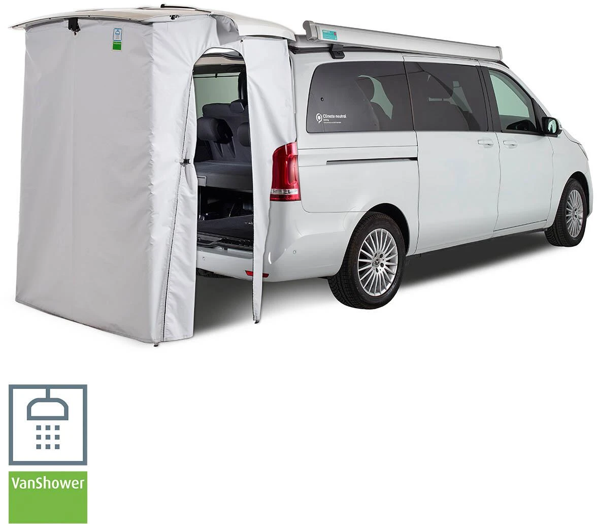 Fix montiert für mehr Flexibilität und einen entspannten Ausflug. Im Handumdrehen montiert eignet sich das Heckzelt „Travel“ als Sanitärraum zum Duschen, als Toilettenzelt, als Umkleide oder auch als wettergeschützte gemütliche Sitzecke. In heißen Sommernächten ist das Zelt zur besseren Schlafplatzbelüftung verwendbar. Es verfügt über zwei von innen verschließbare Moskito-Fenster und einen Tunneleingang rechts.