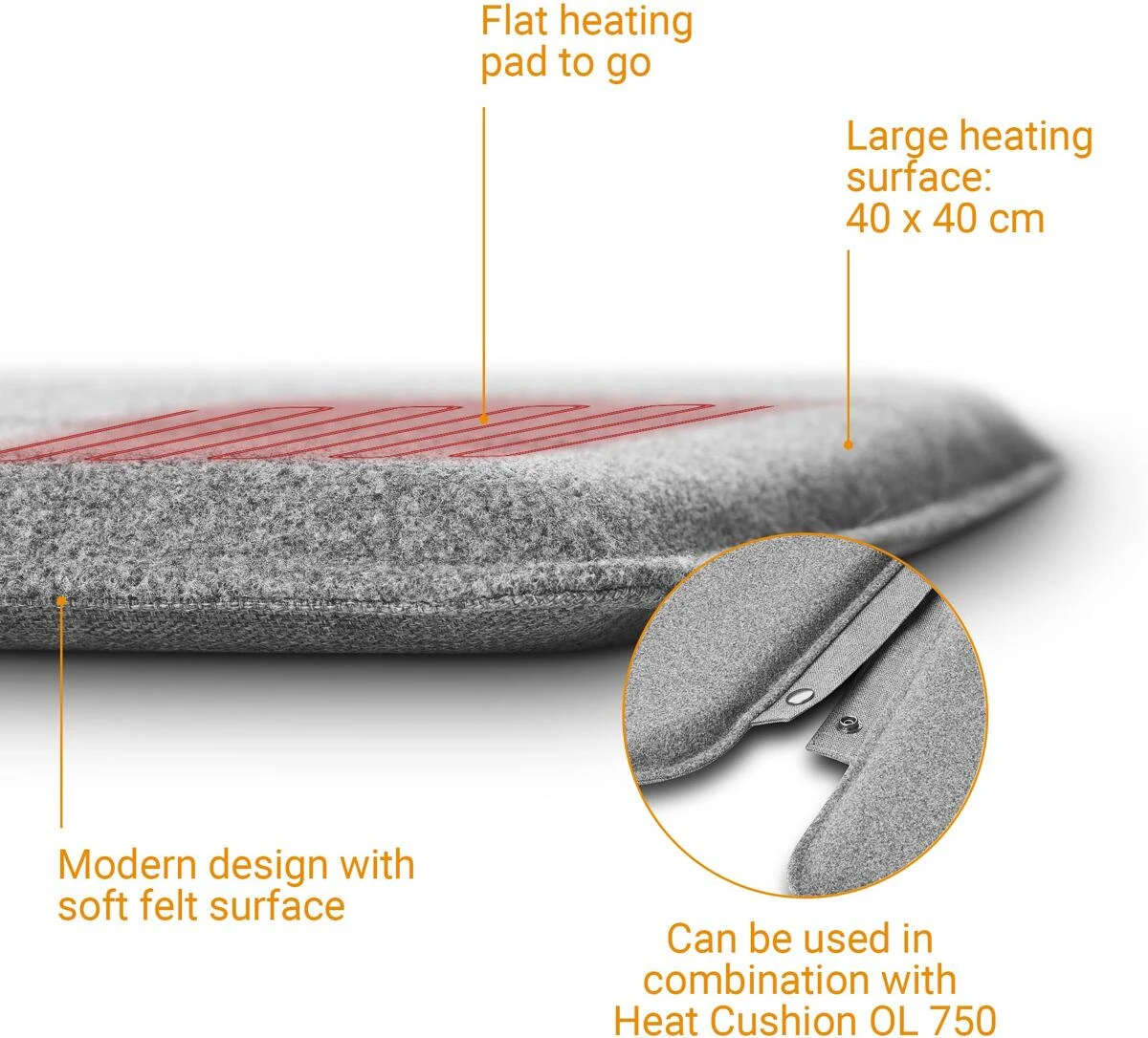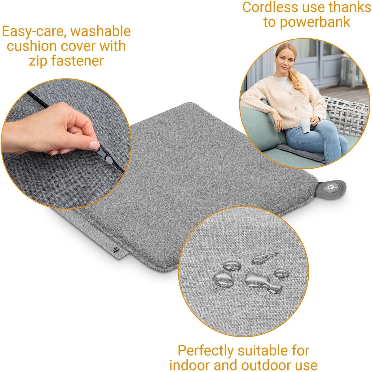 Perfekt geeignet für den Einsatz im Innen- und Außenbereich. Nehmen Sie Ihr Heizkissen überallhin mit und genießen Sie Wärme to go. Ob beim Camping oder zu Hause, das Heizkissen macht jeden Sitz gemütlicher. Dank modularem Druckknopfsystem können Sie Ihre Wärme- und Heizkissen miteinander kombinieren. Das mobile Kissen lässt sich bequem überallhin mitnehmen, denn der Controller ist gleichzeitig auch der Tragegriff. Aus robustem Material hergestellt, ist es schmutz- und feuchtigkeitsbeständig und lässt sich einfach und schnell säubern.