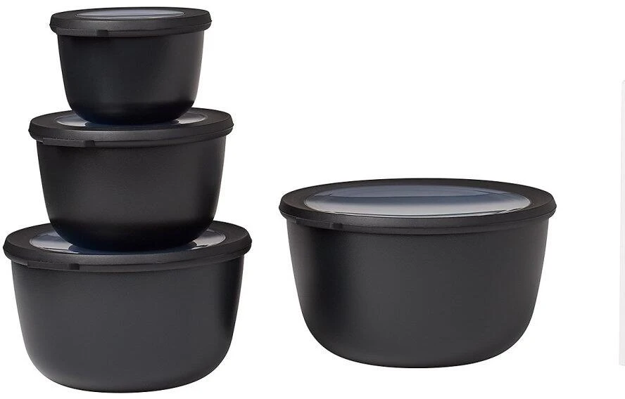 Das Cirqula Multischüssel-Set ist der ultimative Allrounder für Deine Küche. Dieses 4-teilige Set enthält hohe Schüsseln in den Größen von 500 ml, 1000 ml, 2000 ml und 3000 ml. Die Cirqula Schüsseln können zum Aufbewahren, Einfrieren und Aufwärmen von Lebensmitteln verwendet werden. Aufgrund ihrer praktischen Größen sind die Schüsseln zudem ideal geeignet für die Lagerung von Speiseresten, einzelnen Portionen Suppe, kleinen Salaten oder Babynahrung. Die Mepal Cirqula Multischüsseln bestehen aus unzerbrechlichem Material. Das transparente Fenster im Deckel ermöglicht einen Blick auf den Inhalt. Der Deckel ist zudem 100% luftdicht und auslaufsicher. So bleibt Dein Essen länger frisch und lässt sich einfacher mitnehmen. Die unterschiedlich großen Multischüsseln können praktisch ineinander gestapelt und so platzsparend verstaut werden.