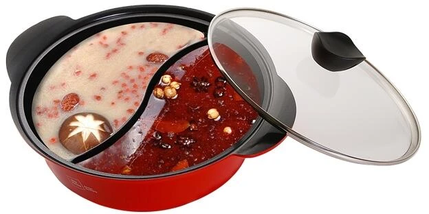 Mit dem Miji Hot Pot Topf ist gemeinsames kochen und essen einfacher als jemals zuvor. Man kann ein Gericht wie Hühnchencurry mit Reis in nur einem Topf zubereiten und mit seiner S-förmigen Trennwand eignet sich der Topf sowohl für klassischen „asiatischen Feuertopf“, als auch für zwei unterschiedliche Fonduesaucen oder -brühen ganz nach Geschmack.