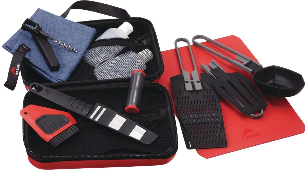 Das Alpine Deluxe Kitchen Set ist unser umfangreichstes Set an Werkzeugen für das Kochen im Freien. Ein abnehmbarer Gurtbandgriff macht die schützende Reißverschlusstasche einfach überall aufzuhängen und im Inneren ersetzen zwei großzügige Netztaschen die altmodischen elastischen Schlaufen, die dazu neigen, die Vielseitigkeit einzuschränken, sich auszudehnen und mit der Zeit ihren Halt zu verlieren. Sie finden Innovationen wie unser kombiniertes Topfsieb/Käsereibe, einen feuchtigkeitsresistenten Salz- und Pfefferstreuer, ein klappbares Schneidebrett, ein Edelstahl-Gebrauchsmesser und vieles mehr.