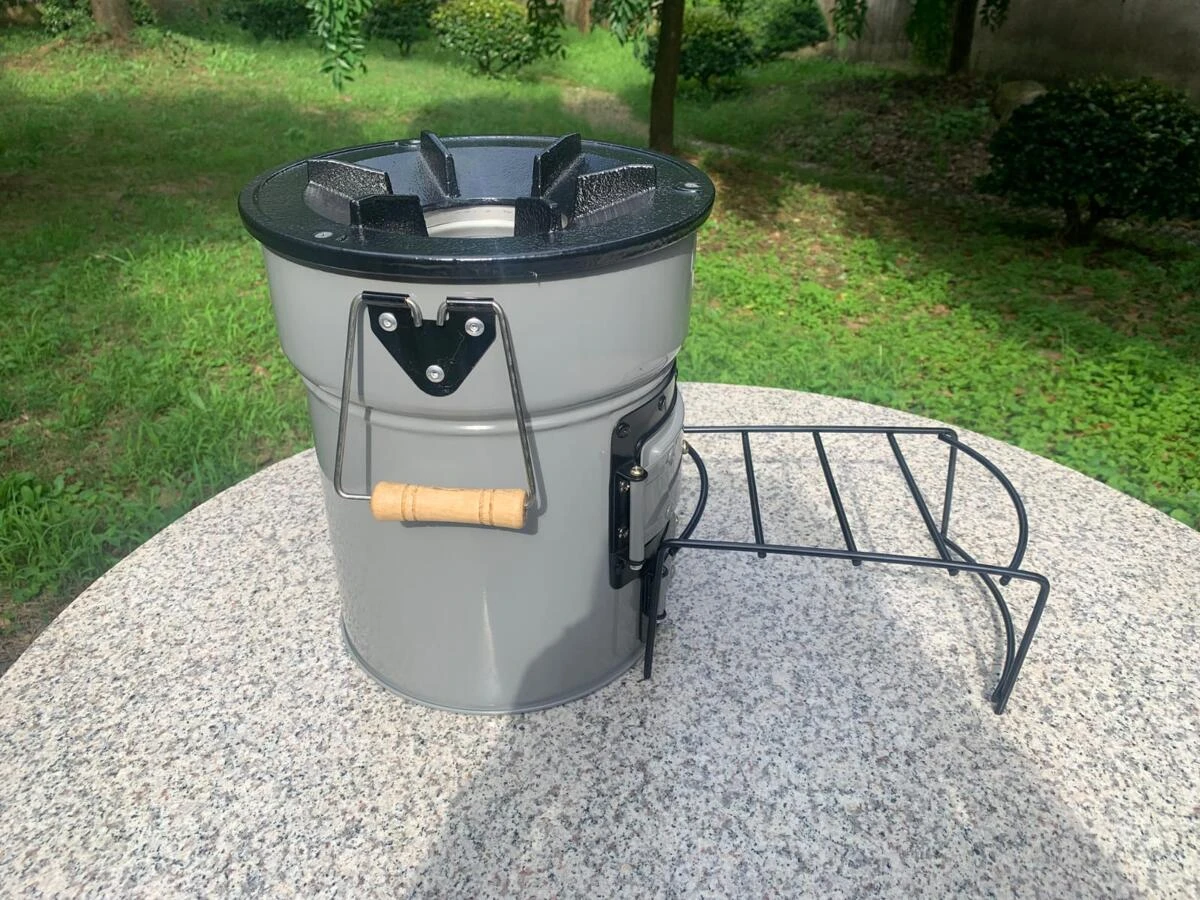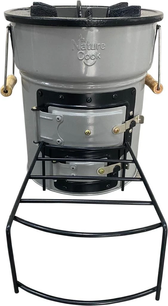 Dieser zweitürige Ofen ist speziell für das Outdoorkochen gemacht. Im Vergleich zum Grillen über offenem Feuer, sorgt dieser Raketenofen dank seiner speziellen Brennkammer-Konstruktion für eine optimale Wärmegewinnung ohne Hitzeverlust und eine Verkürzung der Garzeit. Die nahezu rauchfreie Flamme ohne Funkenflug trägt zu einem entspannten Kocherlebnis bei. Der Outdoor-Kocher kommt vollkommen ohne Strom und Gas aus. Befeuert werden kann er z. B. mit Langholz, Bruchholz, Holzkohle, Pellets oder Zapfen. Durch die untere Tür kann man die Verbrennung kontrollieren und die Sauerstoffzufuhr regulieren. Auch wird hierdurch die Asche zu Reinigungszwecken entnommen. Durch die obere Tür kann der Ofen mit Brennholz befeuert werden.