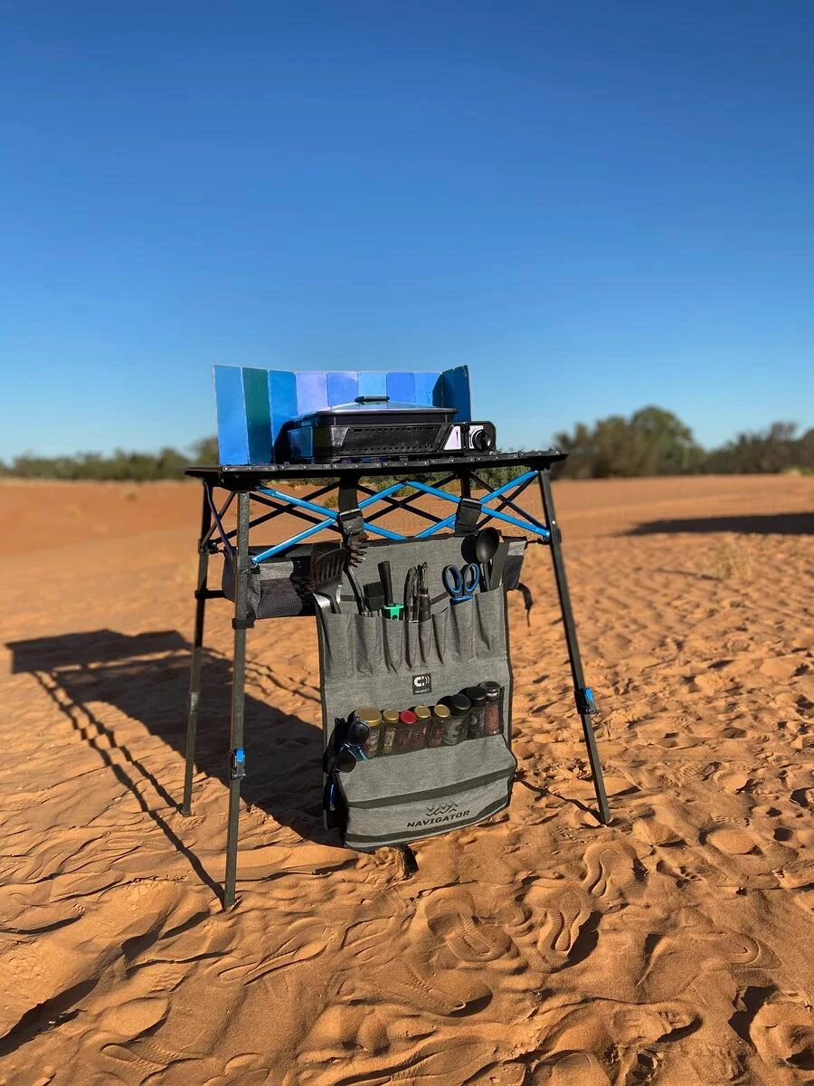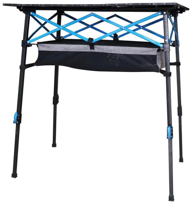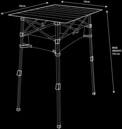 Der Anywhere Klapptisch ist so gut wie überall zu benutzen durch seine 4 höhenverstellbaren Beine kann er jede unebene Fläche ausgleichen. Dazu hat der Tisch noch einen Netzkorb der alle Gegenstände bereit halten kann. Der Tisch kann überall mitgenommen werden da er mit einer Tragetasche kommt in welcher man ihn verstauen kann. Verwendung als Kochtisch, Esstisch oder auf maximale Höhe, um es als Stehtisch zu verwenden! Lässt sich zu einem kompakten Rechteck zusammenfalten und in der Tragetasche verstauen (im Lieferumfang enthalten).