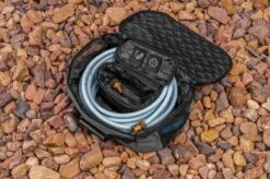 Die Utility-Kumpel Adapter Aufbewahrungstasche fasst bis zu 15 Meter lebensmittelechte Schläuche oder normale Gartenschläuche und bietet Stauraum für alle Betriebsmittel. Der durchgehende Doppelreißverschluss erleichtert den vollständigen Zugriff inklusive der austauschbaren gewebten Abzeichen zur Identifizierung des Inhalts.