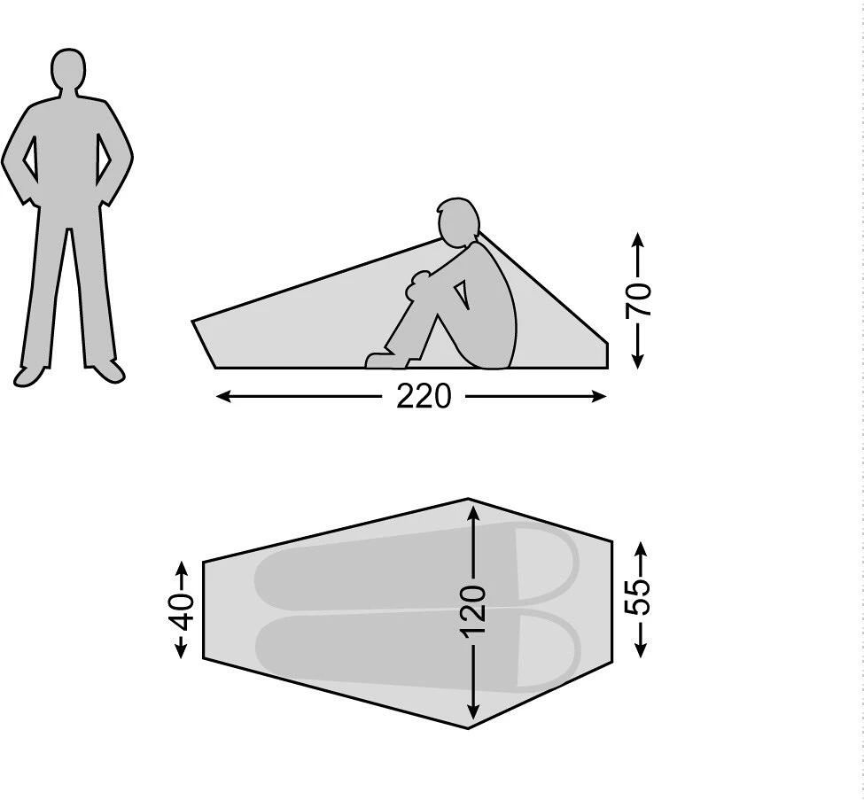 - das 2-Personen-Innenzelt wiegt 210 g ohne Gestänge und Heringe