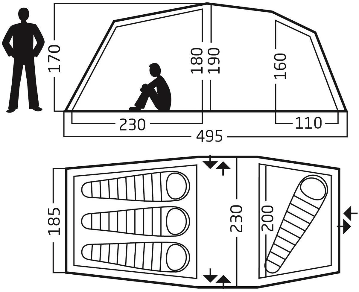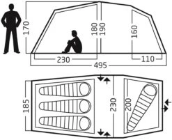 - MaĂźe Innenzelt: 230 x 200 x 180 cm