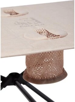 Kleiner und extrem leichter Campingtisch mit praktischen Getränkehaltern. Die faltbare Tischplatte ist mit Stoff überzogen und der robuste Rahmen aus Aluminium ist leicht und langlebig.