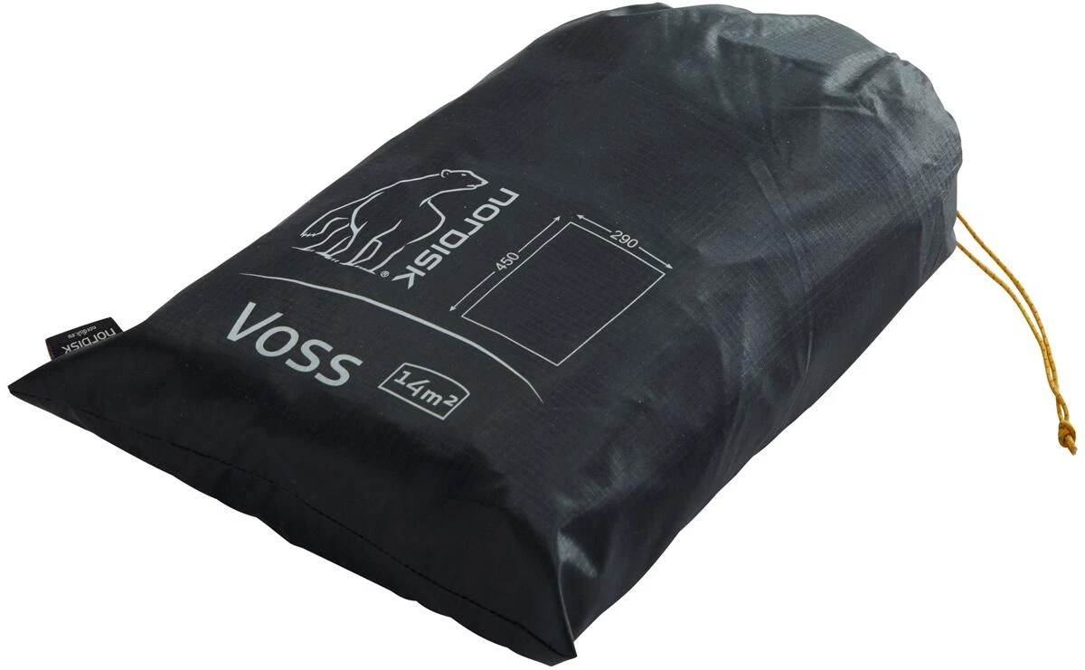 Das 14 m² große Tarp der Voss SI-Serie ist leicht, sehr strapazierfähig und flexibel einsetzbar. Mehre Tarps können bei Bedarf miteinander verbunden werden. Der rechteckige Schnitt ermöglicht eine Vielzahl von Abspannmöglichkeiten bei jedem Wetter und in fast jeder Umgebung. Das Tarp hat diverse verstärkte Abspannpunkte an den Seiten und an den Schlaufen im Gewebe. Sie können mithilfe des Nordisk Helmet Slides, Wanderstöcken, Abspannleinen oder Ähnlichem aufgebaut werden. Voss SI Tarps können freistehend genutzt werden. So schafft man zusätzlichen, geschützten Lagerplatz. Abhängig von Form und Größe des Tarps kann es aber auch als Zelterweiterung eingesetzt werden.