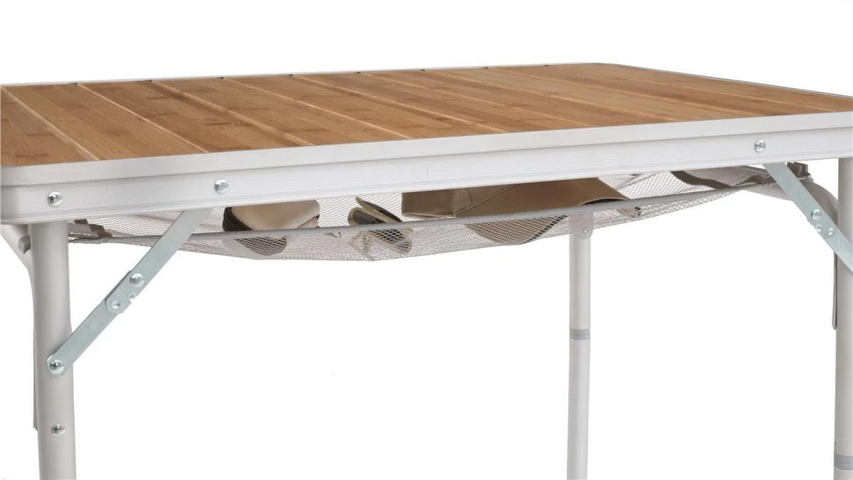 Der elegante Bambus-Tisch kombiniert natürliche Schönheit mit modernen Design. Der Tisch ist zum Transport kompakt zusammengelegt und leicht zu tragen, aber aufgebaut äußerst stabil. Für Picknick und Camping ideal geeignet.