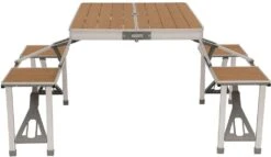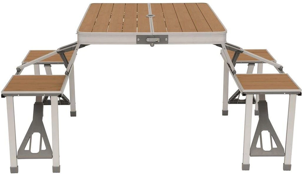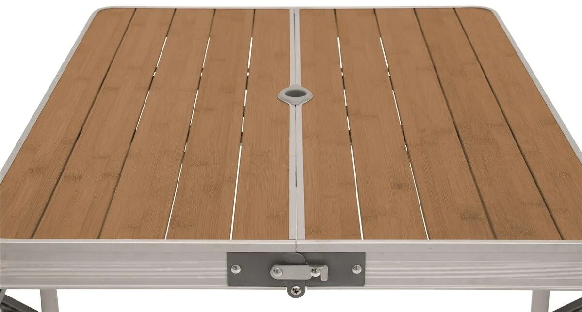 Der elegante Bambus-Tisch kombiniert natürliche Schönheit mit modernen Design – Ihr Nachbar auf dem Campingplatz wird Sie beneiden. Der Tisch ist zum Transport kompakt zusammengelegt und leicht zu tragen, aber aufgebaut äußerst stabil. Für Picknick und Camping ideal geeignet.