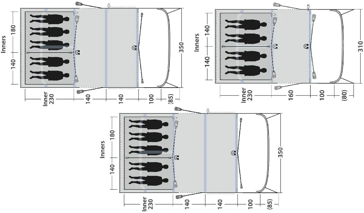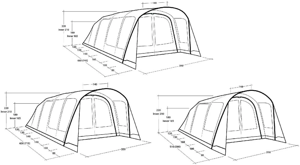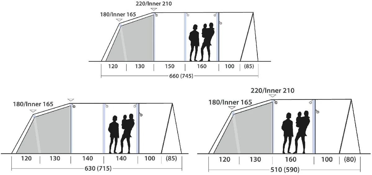 - Zelttyp:Â Dreiraum-Tunnelzelt
