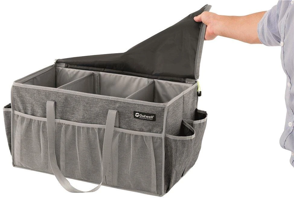 Die Küchenaufbewahrungsbox Margate lässt sich flach zusammenfalten und ist mit vielen praktischen Taschen, einem Reißverschlussdeckel und zwei herausnehmbaren Trennfächern mit Klettverschluss versehen.