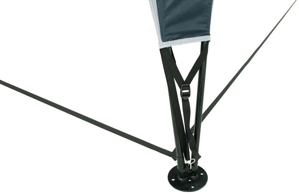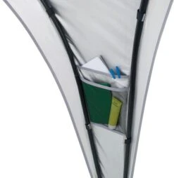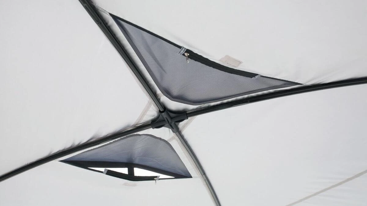 Die Outwell Summer Lounge bietet einen vielseitig nutzbaren, frei stehenden Unterschlupf. Die äußerst robuste und stabile Konstruktion zeichnet sich durch große Zugänge und eine bequeme Stehhöhe aus. Dank der Belüftungsöffnung an der Spitze, dem Aufhängepunkt für eine Laterne in der Mitte sowie zwei Netztaschen bietet die Lounge ein Höchstmaß an praktischer Flexibilität. Der widerstandsfähige Stoff Outtex® 1500 Pro Silver bietet einen UV-Schutzfaktor von über 50. Um einen größeren geschützten Aufenthaltsbereich zu schaffen, können miteinander kompatible Schutzdächer über eine Regenrinne verbunden werden.