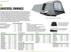 Das Outwell Universal Vorbau ist für alle aufblasbaren Zelte und Gestänge-Zelte von Outwell (außer Encounter-Zelte) geeignet und kann diese auf einfache Weise erweitern. Jedes der hervorragend konstruierten und sorgfältig gefertigten Designs lässt sich leicht anbringen, so dass man den Wohnbereich schnell um einen geschützten Raum zum Entspannen oder als Stauraum erweitern können. Die robuste Konstruktion mit Stahlstangen und Outtex® 4000 Select-Gewebe ist stabil und langlebig, und für einen praktischen Zugang über die schräge Vordertür verfügt jedes Zelt über eine flach faltbare Bodenplane. Je nach Wetterlage und Familienaktivitäten können die Seitenteile mit Reißverschluss aufgerollt werden, um den Zugang zu erleichtern, die Belüftung zu verbessern und ein tiefes Vordach zu schaffen. Rollt man nur eine Seite weg, so entsteht ein verandaähnlicher Raum, der das Leben im Zelt vielseitiger macht. Große Fenster sorgen für einen lichtdurchfluteten, luftigen Innenraum, wenn Tür und Seitenwände geschlossen sind, was Ihr Zeltleben auf ein neues Komfortniveau erhebt.