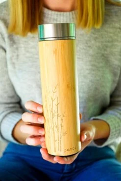 Die pandoo Thermoflasche ist sehr robust, auslaufsicher und bei guter Pflege sehr langlebig. An diesem Kaffeebecher hast du lange Spass und du kannst damit hunderte Einwegbecher ersetzen. Sämtliche Materialien sind lebensmittelgeeignet und BPA frei. Der edle Bambus Mantel sieht nicht nur gut aus sondern fühlt sich sehr angenehm in der Hand an. Die doppelwandig und vakuumisolierte Trinkflasche hält deine Getränke für bis zu 12 Stunden heiß oder kalt. Das entnehmbare Teesieb ist perfekt, um direkt in der Isolierflasche den losen Tee aufzubrühen. Natürlich können auch Kräuter oder Früchte für ein aromatisiertes Wasser zugegeben werden. Die perfekte und nachhaltige Lösung für die Arbeit und unterwegs.