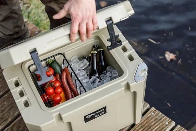 Du kannst bis zu zwei Einsatzkörbe gleichzeitig in deiner Petromax Kühlbox kx25 verwenden. Dabei empfehlen wir dir, die untere Hälfte bis zu einer Höhe von max. 15 cm mit Eis und Getränken oder Fleisch zu füllen. So bleibt der Inhalt deines Einsatzkorbes dauerhaft trocken.