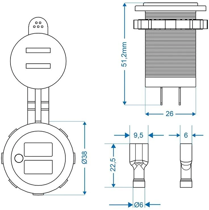 Die Pro Plus USB Doppelsteckdose mit integriertem Spannungswandler zum Laden und Betreiben von USB-Geräten.