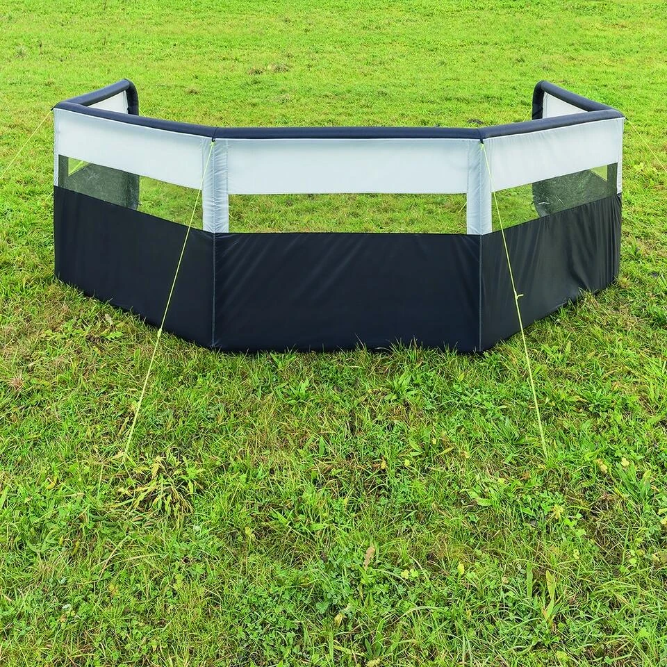 Windschutz mit Lufttechnologie. Der Windschutz kommt ohne Gestänge aus, einfaches Aufstellen durch aufpumpen.