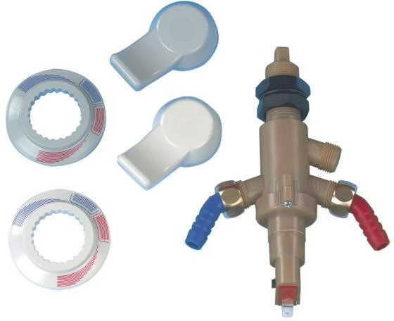 Für Warm-/Kaltwasser. Funktionen: Mischen/Aus. Konstante Temperatur auch bei Veränderung der Durchflussmenge. Mit Automatikschalter.
