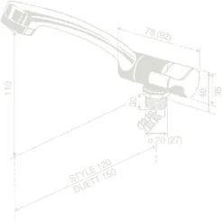 Wasserhahn MULTI-MIX DUETT mit dreh- und schwenkbarer Brause. Drehweg des Knebels beträgt nur 90°. Mit Mikroschalter.
