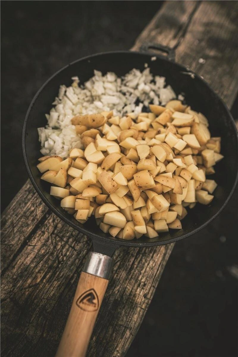 Die gusseiserne Robens Tahoe Pan Pfanne hat einen optimalen Hitzetransfer für gleichmäßiges Erhitzen.