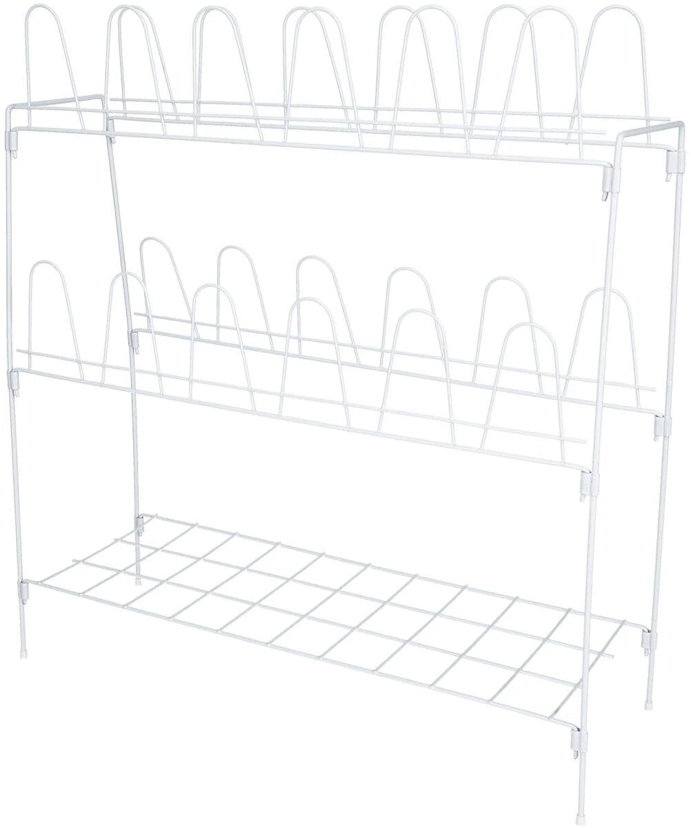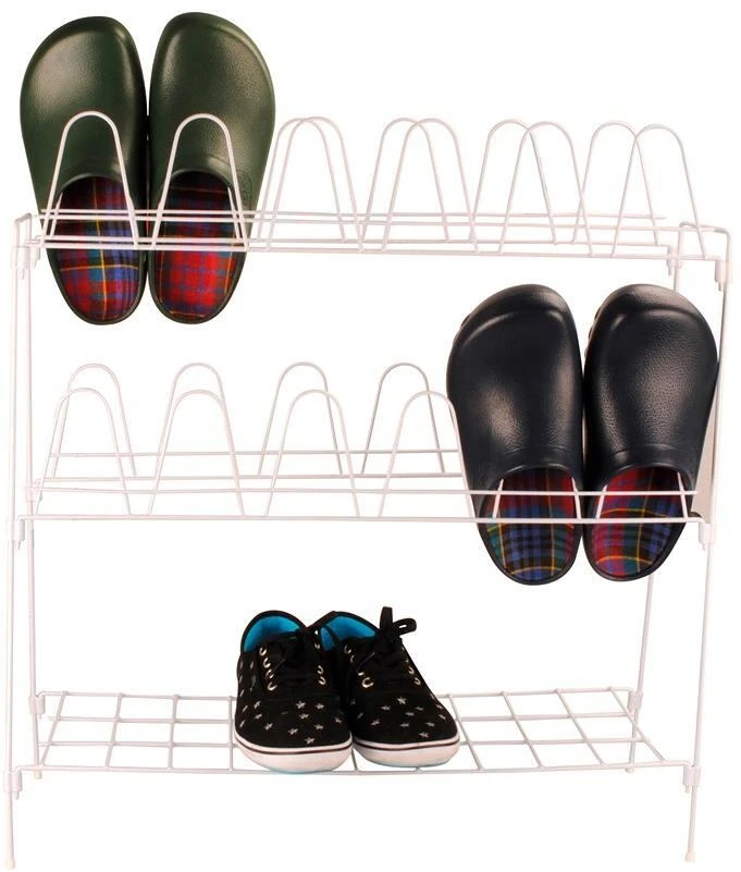 Für 12 Paar Schuhe. Extra Ablagefläche. Aus kunststoffüberzogenem Draht. Klein zusammenlegbar. Seit Jahrzehnten bewährt.