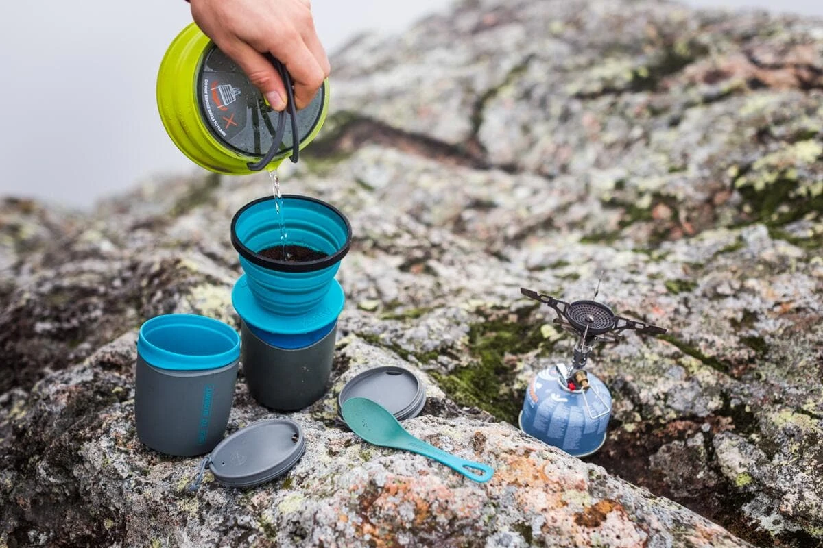 Der X-Brew ist ein faltbarer Kaffeefilter mit einem wiederverwendbaren Sieb. Seine kompakte Größe ergibt Kaffee für zwei Tassen und lässt sich zusammen mit einem X-Mug in den X-Kettle reinlegen – einfach frischen gemahlenen Kaffee und heißes Wasser hinzufügen. Ideal für den umweltbewussten Wildnis-Barista.