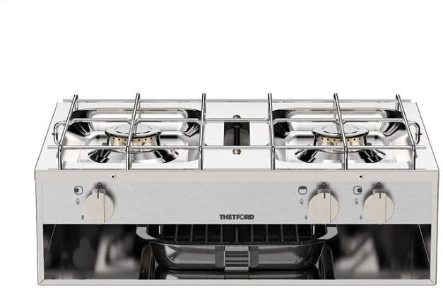 Diese Kochplatte mit 2 Brennern und Grill bietet Ihnen völlige Freiheit beim Camping. Einfach an eine Gasflasche anschließen – und loslegen!