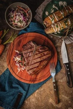 Grillkünstler wissen das traditionelle Churrasco aus Brasilien zu schätzen. Hier wird das frische Fleisch typischerweise mit grobem Salz gewürzt, gegrillt und anschließend in netter Gesellschaft verspeist. Damit das saftige Grillgut auch stilgerecht zerteilt werden kann, bietet TRAMONTINA das 4-teilige Steakbesteck Jumbo an. Die extrem harte Klinge aus rostfreiem Edelstahl (AISI 420, entspricht DIN 1.4028) begeistert durch eine lange Schnitthaltigkeit. Sowohl die Griffe der Messer als auch der Gabeln sind aus speziellem FSC zertifiziertem Echtholz gearbeitet. Dieses Holz aus mehreren mit Harz imprägnierten und gepressten Schichten Kiefernholz ist extrem widerstandsfähig, stoßfest, temperaturunempfindlich und spülmaschinenfest. Auch nach häufigem Gebrauch wirkt das Grillbesteck-Set edel und wie neu.