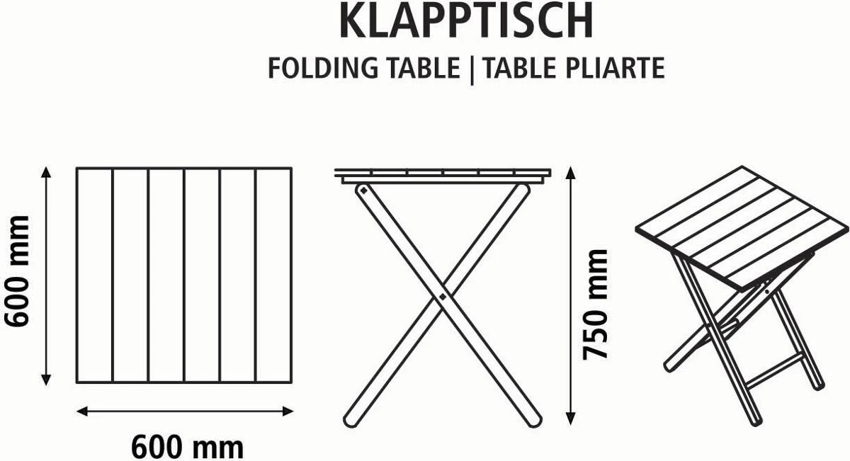 - MaĂźe B x T x H Tisch aufgeklappt: 60 x 60 x 75 cm