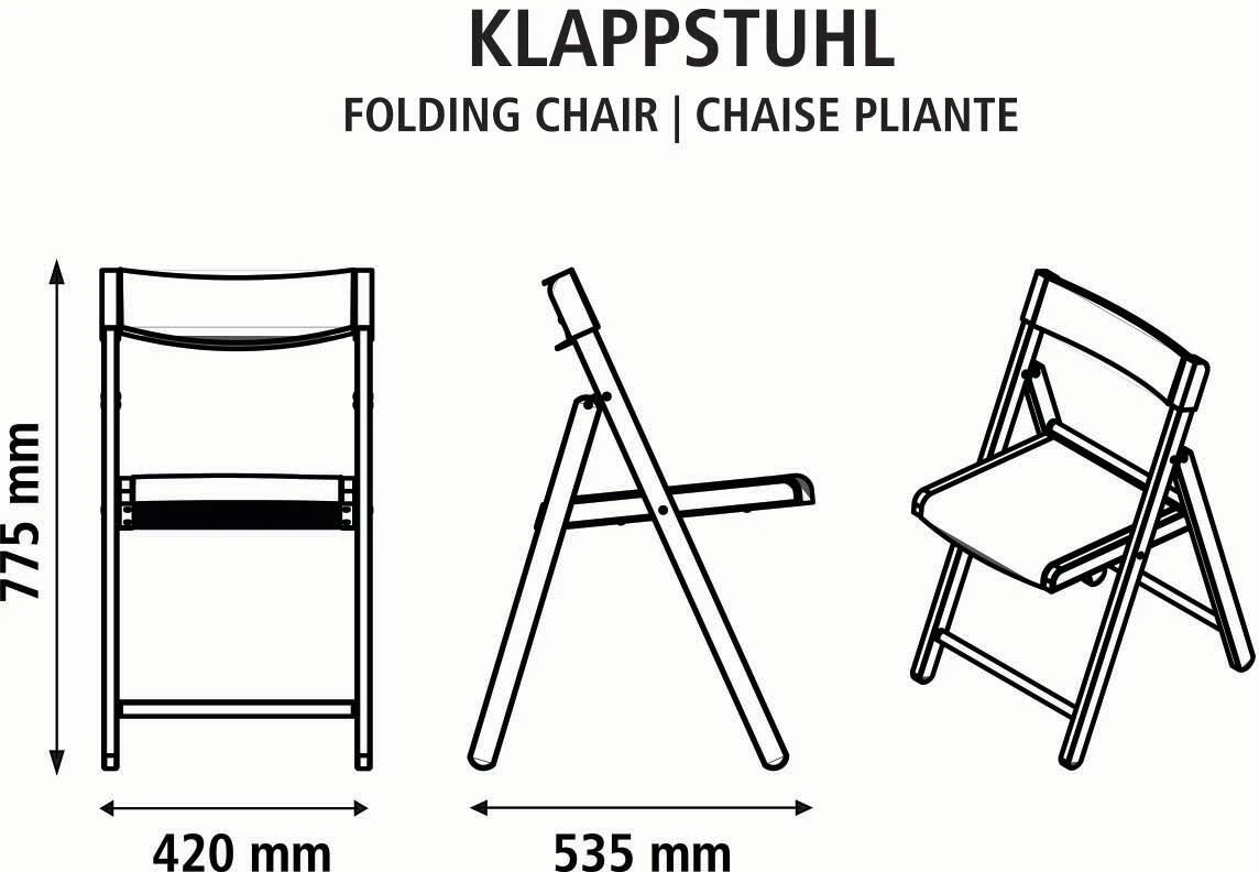 - MaĂźe B x T x H Stuhl aufgeklappt: 42 x 53,5 x 77,5 cm