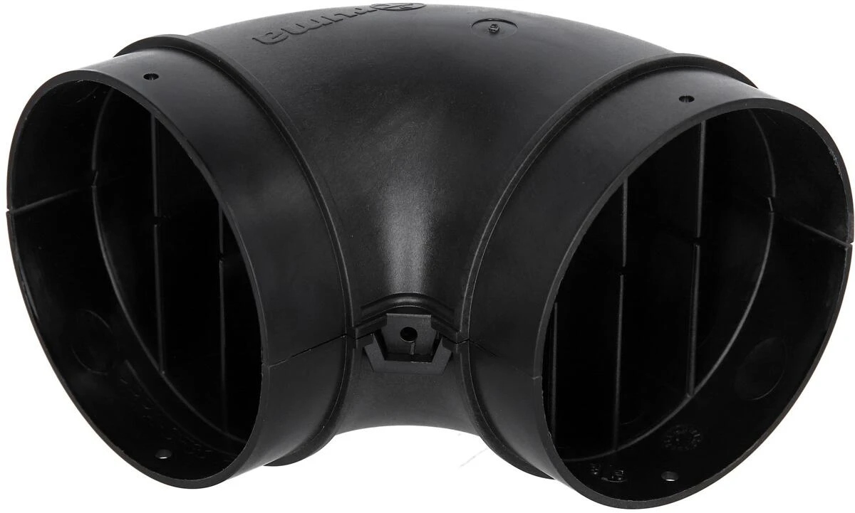 Dieses praktische Bogenrohr ermöglicht den Anschluss eines Warmluftrohres an die Warmluftstutzen.