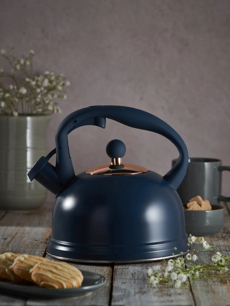 Die OTTO Collection Serie von Typhoon ist nicht nur praktisch, sondern sieht auch im neuen Farbton navyblau besonders gut aus.Die Aufbewahrungs-Kollektion OTTO kombiniert edles navyblau mit Gold. Diese verleiht ihrer Küche eine ganz besondere Eleganz. Dieser stillvolle Wasserkocher aus der Typhoon Living Otto Kollektion ist für die komfortable Handhabung mit einem griffigen, weichen Griff ausgestattet. Zudem besitzt der Kessel einen schnell umklappbaren Ausgießer der pfeift, sobald das Wasser kocht. Das großzügige Fassungsvermögen von 2 Litern – ist ideal für die Zubereitung einer großen Kanne Tee für die ganze Familie. Das hochwertige Edelstahlgehäuse mit hitzebeständiger Außenseite, schützt die Hände.