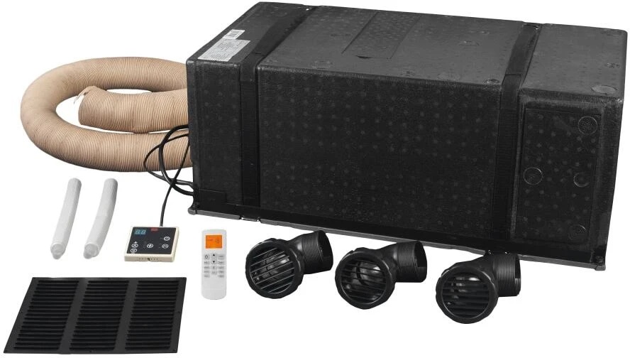 Die Staukastenklimaanlage wurde speziell für mittelgroße Wohnwagen und Wohnmobile entwickelt, bei denen es keine praktische Möglichkeit gibt, eine Dachklimaanlage zu installieren. Dieses Gerät kann kühlen und heizen. Mit Fernbedienung, inklusive Sleep-, Timer- und Entfeuchtungsfunktion.