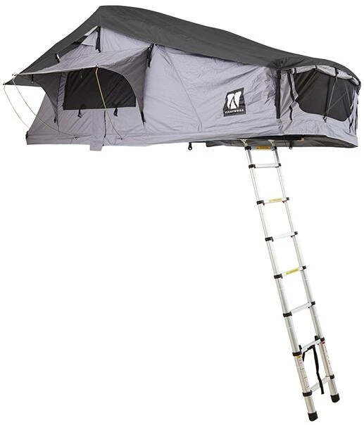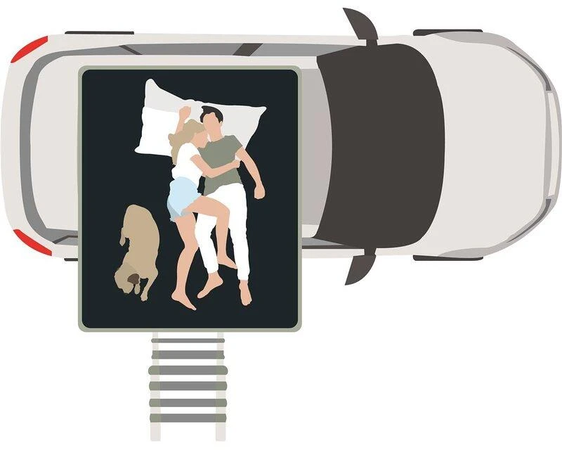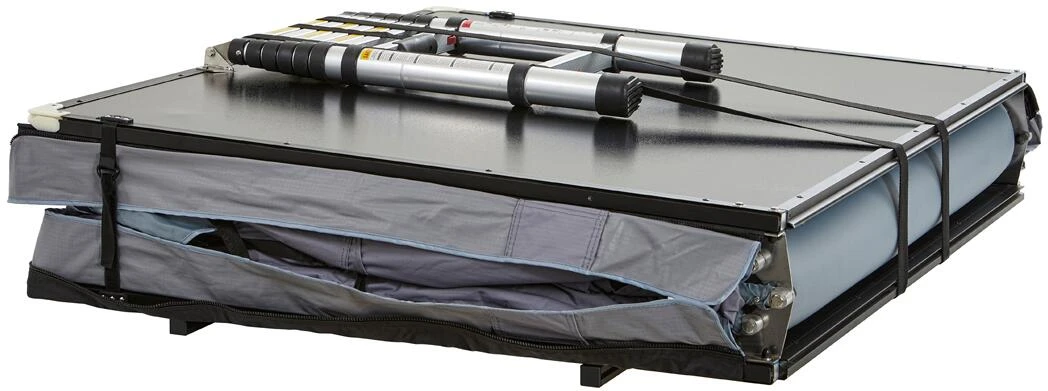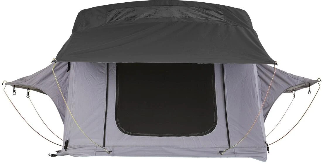 Das Balsa Light überzeugt durch sein geringes Gewicht von nicht mal 60 kg, und ist somit auch für kleinere Fahrzeuge mit einer geringeren dynamischen Dachlast eine Option. Aufgeklappt überzeugt das Balsa Light durch ein tolles Raumgefühl und bietet dir eine Liegelänge von 2,30m. Der Auf- und Abbau ist übrigens super easy zu handeln. Durch den überdachten Vorbau bietet dir das Balsa Light einen wettergeschützten Einstieg, somit kommst du immer über die Teleskop Aluminium Leiter trocken im Inneren an. Damit das Innere auch trocken und sauber bleibt, findest du oben am Zelteingang eine Schuhtasche, um deine Schuhe zu verstauen. Oben angekommen erwartet dich eine tolle Aussicht mit Baumhaus-Feeling. Du findest zu drei Seiten große Fenster, die du je nach Belieben über ein Reißverschlusssystem öffnen und verschließen kannst. Jede Öffnung ist mit einem Moskitonetz versehen, damit du vor unangenehmen Stechtieren geschützt bist. Wenn es dir nachts zu dunkel ist oder du etwas Licht benötigst, ist das im Balsa Light auch kein Problem. Es ist eine LED Leiste integriert, die- über eine Powerbank angeschlossen- eine angenehme Lichtquelle liefert. Das Balsa Light hält dich durch seine wasserabweisende Außenhülle, überlappende Stoffbahnen und getapten Nähte vor schlechtem Wetter trocken.