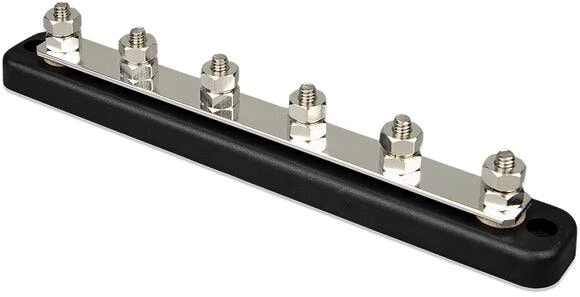 Sammelschienen werden für die Hochstromverteilung verwendet und dienen gleichzeitig als Anschlüsse für Batterien bzw. Gleichstromgeräte. Wir bieten eine Reihe von Sammelschienen mit unterschiedlichen Nennströmen und eine unterschiedliche Anzahl von Anschlussklemmen an. Jede Sammelschiene ist mit einer abnehmbaren Schutzabdeckung ausgestattet.