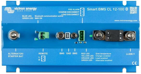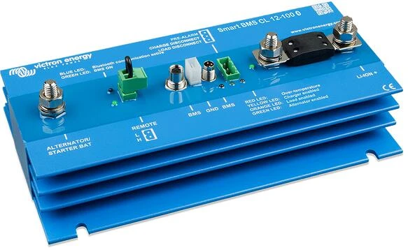 Das BMS wird an 12,8 V Victron LiFePO4 (LFP) Batterien angeschlossen. Bis zu 5 Batterien können parallel angeschlossen werden. Kann als Ein- und Ausschalter des Systems verwendet werden.