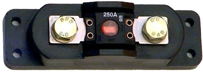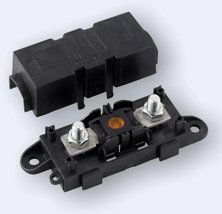 Voll isolierter Sicherungshalter für Hochlastsicherung zur Absicherung großer Verbraucher bzw. Hochlast-Stromkreise. Der Sicherungshalter ist beidseitig mit M8-Gewinde ausgestattet.