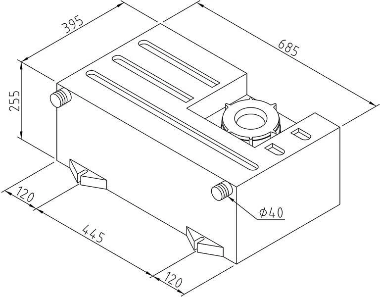 - 2 Einfüllstutzen Ø 40 mm, bei Bedarf zu öffnen
