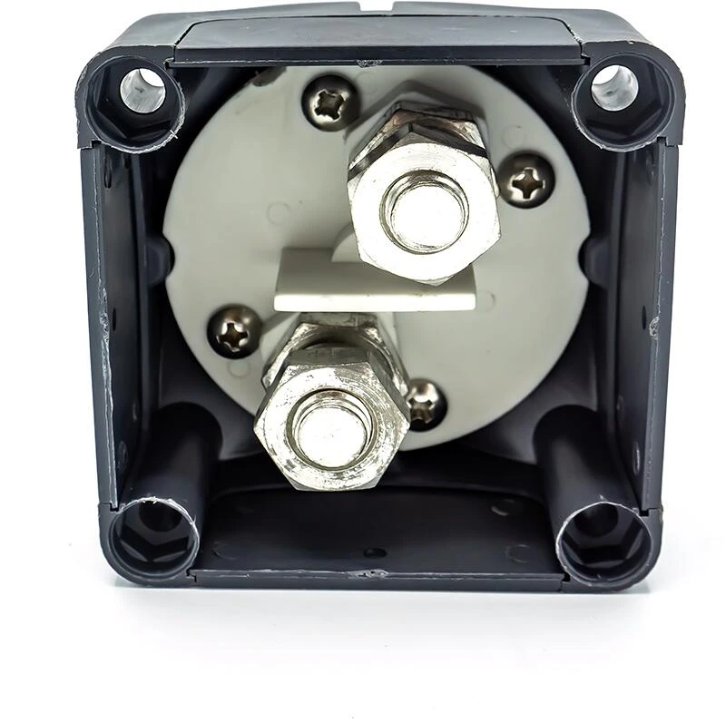Ein Einsatz im Wohnmobil oder Caraven ist ebendso möglich wie ein Verbauen bei stationären Anlagen. Der Schalter hat die Postionen AN und AUS. Mit dem ergonomischen Drehknopf ist eine einfache und sichere Bedinung gegeben Die Montage erfolgt als Aufbaulösung. Spritzwassergeschützes Gehäuse mit internen Schaltkontakten. Der Kabelanschluss ist von allen vier Seiten des Schalters möglich. Nicht benötigte Kabeleingänge werden durch Kunststoffeinleger verschlossen. Der Schalter ist für Aufbau- und bedingt für Einbaumontage geeignet. Bei einer Einbaumontage kann ein 68 mm Loch ausgeschnitten werden.