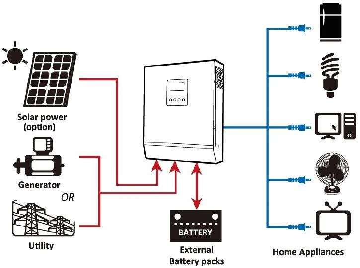 - Leistungsfähiger Inselwechselrichter: Sinus Wechselrichter, Solar Laderegler, Batterie-Ladegerät in Einem