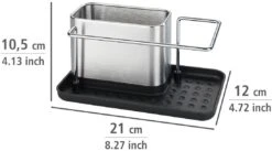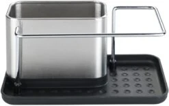 - Praktisches Design: Der Spülbecken-Caddy bietet stilvolle Aufbewahrung mit viel Stauraum für Spülmittel, Spültuch, Schwamm & Co. in mattiertem Silber