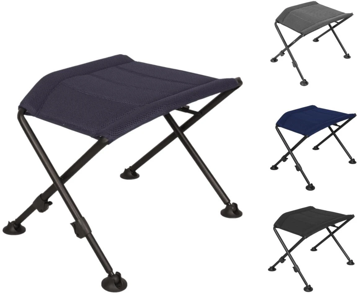 Praktische, faltbare und verstellbare Fußauflage mit atmungsaktivem DuraDore® 3D Mesh. Die Form und zwei verstellbare Vorderbeine bieten einen ergonomischen Komfort und Entspannung in individuell einstellbaren Positionen.