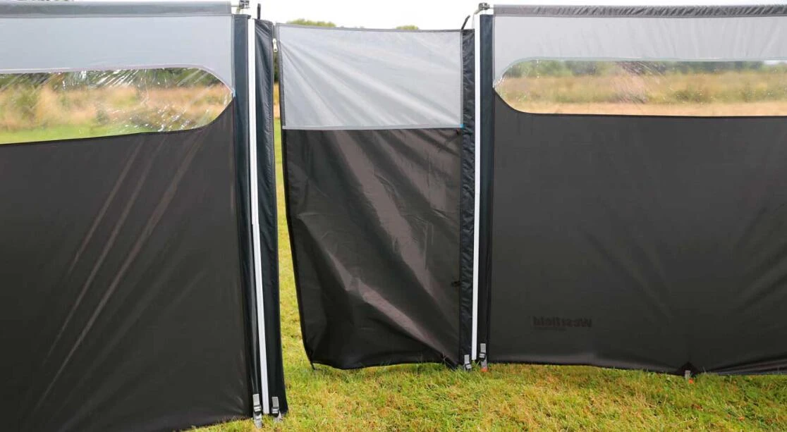 Das Türelement ist eine bequeme Ergänzung zum Windschutz Windshield Pro von Westfield. Verlassen Sie Ihre Privatsphäre ganz entspannt über die mit Reißverschlüssen angebrachte Tür und schützen Sie sich im geschlossenen Zustand vor unerwünschten Blicken.