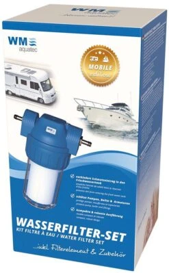 Das Wasserfilter-Set „Mobile Edition“ ist ein Komplett-Set zum Einsatz beim Camping, Caravaning und Yachting. Es besteht aus einem dreiteiligen Wasserfilter-Gehäuse, einem PP-Trinkwasserfilter und diversem Zubehör. Zusätzlich ist das Gehäuse mit einem Entlüftungsventil ausgestattet. Rost, Sand oder sonstige Schmutzstoffe im Wasser werden effektiv herausgefiltert und verspricht somit eine bessere Wasserqualität. Ob beim Befüllen des Frischwassertanks (mobiler Einsatz) oder beim Festeinbau im Wohnmobil, Caravan und Boot mit dem Wasserfilter-Set „Mobile Edition“ schützen Sie auch Pumpen, Boiler oder Armaturen vor Schmutzstoffen und erhöhen dadurch ihre Lebenszeit.