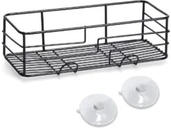 Modern und praktisch – dieses schöne Badregal aus pflegeleichtem Eisen passt perfekt in jedes Badezimmer. Das Regal lässt sich einfach ohne aufwendiges Bohren mit zwei Saugnäpfen an jeder Wand befestigen. Duschgel, Cremes und Badeutensilien haben künftig einen fest Platz und nehmen keinen Platz mehr weg in Duschen oder auf Badewannen. Zwei zusätzliche Haken eignen sich perfekt zum Aufhängen und Trocknen von nassen Waschlappen oder Duschschwämmen.